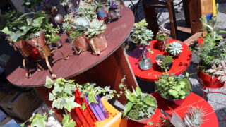花は金属の切粉にセットされていて、異素材が出会うことで独特の存在感を放っています。