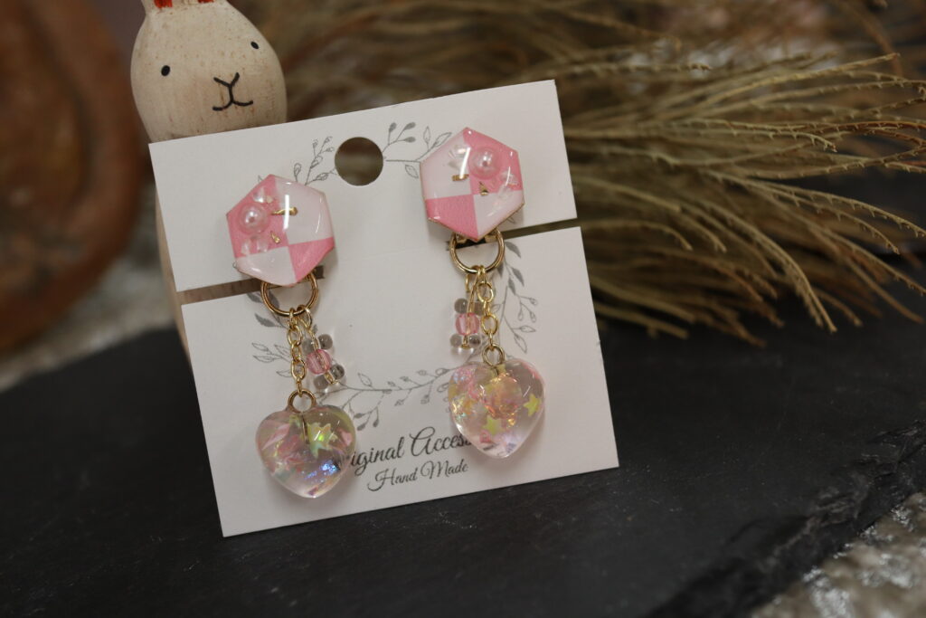 レジンハートの中にはホログラムが入っていて、見る角度によってキラキラ輝く