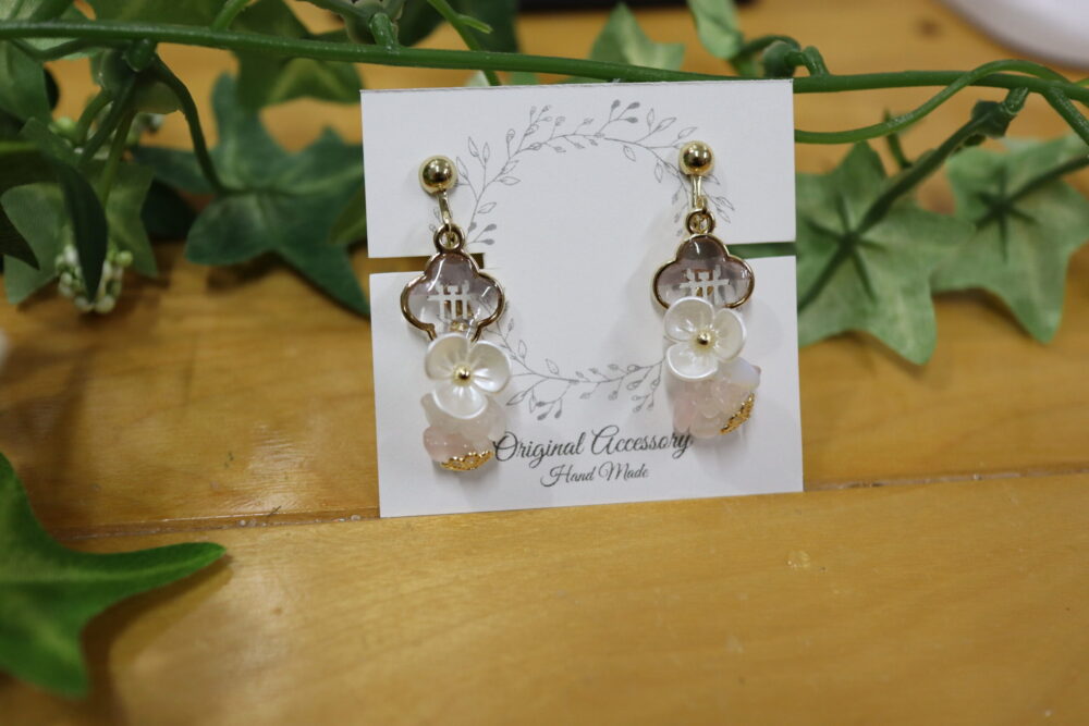 春色🌸 スタッフブログ 2025.11.15 こんにちは🌞 昔に製作した、春色のアクセサリーです。 小さなお花のモチーフが可愛らしく、優しい雰囲気に仕上がりました🌸 ローズクォーツのさざれ石を使用しており、淡いピンクの輝きが春の空気を思わせます✨(秋だけど…)